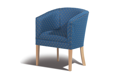 A traditional tub chair with shaped wooden legs